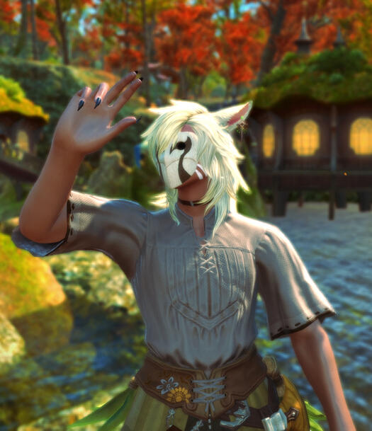 ㅤbiography.ㅤ Dravanian-born and Shroud raised, this masked Conjurer and generations of his family have been a staple of the shaded boughs of the Twelveswood and rolling foothills of Dravania for generations. Many comparisons have been drawn between the mask-wearing Elakhi and their profession of chasing disaster around Eorzea. Some call them vultures and vipers, others equate their work to uplifting wings of salvation. These mask-wearers carry deeply entrenched family tradition, still wearing wooden masks to stave off any potential Green Wrath. They chase disasters, whether they be natural disasters, pox and plague, conflict-wrought injuries, and render free-of-charge aid to the victims. Not every Elakhi has preferred the same method-- some are purely alchemists that mend with potions and tinctures. Some are purely triage specialty that open up the body with scalpel and reseal wounds with stitches. Some still are conjurers, purely using aetherical healing to mend broken bones and purify illness. All the same, if you'd found yourself down on your luck in the Shroud, there's a non-zero chance you may've been helped by a masked figure who refused to take any sort of payment for services rendered.Kai'a, himself, has settled on a happy mix-- preferring to use the potions and salves taught to him by his grandfather or the triage techniques imparted upon him by his father. He's well-published, a downfall of his own hubris, the papers were written by and published under his true name. Most of his papers are over native plants, their ranges, and most importantly, their medical derivatives and aetherical properties. There are a handful of medications within these papers that were pioneered by the alchemist. In addition, he's published two books. Floral Triage Vol 1: Eorzean Natives. Each set of pages covers a specific plant. It's native ranged, drawings of it's flower structure and leaf shapes, notable aspects like strong scents or variegation patterns. There must be hundreds of plants catalogued, the back half of the book devoted to alchemical recipes. Nothing complex, all simple medicines that one might be able to make at home. Worded for the common folk to understand. There's a second volume: Floral Triage Vol 2: Hingashi & Othardian Natives. As one might expect, it's much the same but the plants are those native to the Far Eastern. You'll find the masked Conjurer continuing his services with the Stillglade Fane under the moniker A'ranoh; and running a small tea-and-smoke house in the Mists.